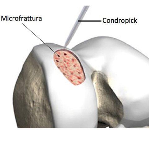 Quando viene eseguito un intervento di microfrattura, vengono praticati dei fori nell'osso esposto, privo di rivestimento cartilagineo, a circa 4 mm di distanza, per cercare di rilasciare alcune cellule staminali provenienti dal midollo osseo che alla fine formeranno un coagulo e poi un tessuto cicatriziale nell'area della microfrattura. La tecnica della microfrattura produce una superficie ossea ruvida alla quale il coagulo aderisce più facilmente. Questo coagulo alla fine matura in un tessuto riparatore solido che diventa liscio e resistente.
